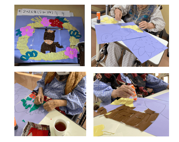 今月のレクリエーションでは、入所者の皆様が力を合わせて今年の干支である
