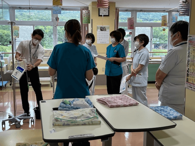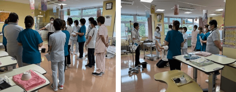 今月は4階病棟(介護医療院)でのOJTを、業者による輸液ポンプの使用について説明会で実施しました。
