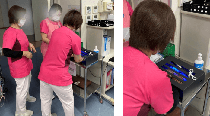 実際手洗いの後、薬や器具を使用してしっかり手洗いをした後、どこに洗い残しがあるのかを確認しました。